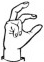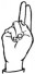 На ћирилици написано САЊА КУРМАЗОВИЋ састоји се из 14 слова [?]. Исписано ћириличном једноручном азбуком за глувонеме:
